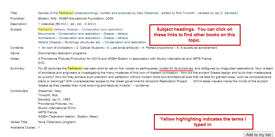 We’ve already looked at other web-based resources: these include library databases such as Academic Search Ultimate, plus many subject specific databases. You can think of library databases as specialized search engines. Library catalogs are another kind of specialized search engine. Our library catalog tells you what physical items the library owns: books, CDs, DVDs, etc. ) We’v also used OneSearch, the library’s new easy search system, which searches Stewart Library’s catalog, and most of its library databases from a Google-like interface. It also allows you to search materials from other libraries and universities.